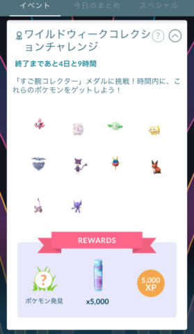 どのポケモンも期間中野生で出現しやすくなっており、野生ポケモンの捕獲だけでクリア可能なチャレンジとなっています。