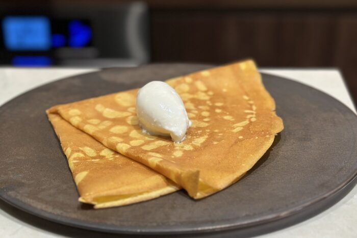 目の前で調理して提供される出来立てのクレープは、濃厚な味わいの赤たまごをたっぷり使った風味豊かな生地が特徴的です。バターも贅沢に使用することでコクが増し、オリジナルキャラメルとの相性も抜群。