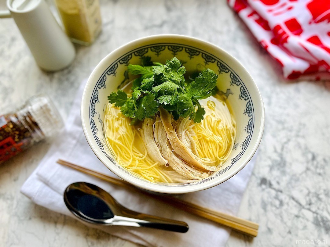 中華麺と合わせれば、スープまで飲み干したい絶品鶏そばに。麺は出汁と絡みやすい細麺がおすすめです。お好みで鶏肉やパクチーをトッピングして召し上がれ♪