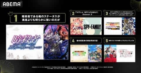 「ABEMA」で無料独占・見放題最速配信中の『暗殺者である俺のステータスが勇者よりも明らかに強いのだが』(通称『ステつよ』)が再生数部門で堂々の1位を獲得しました。