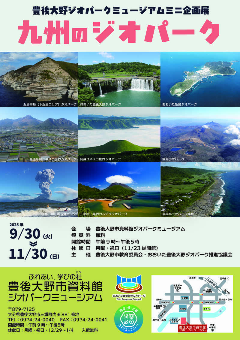 豊後大野市資料館ジオパークミュージアムで『ミニ企画展 九州のジオパーク』が開催中です。