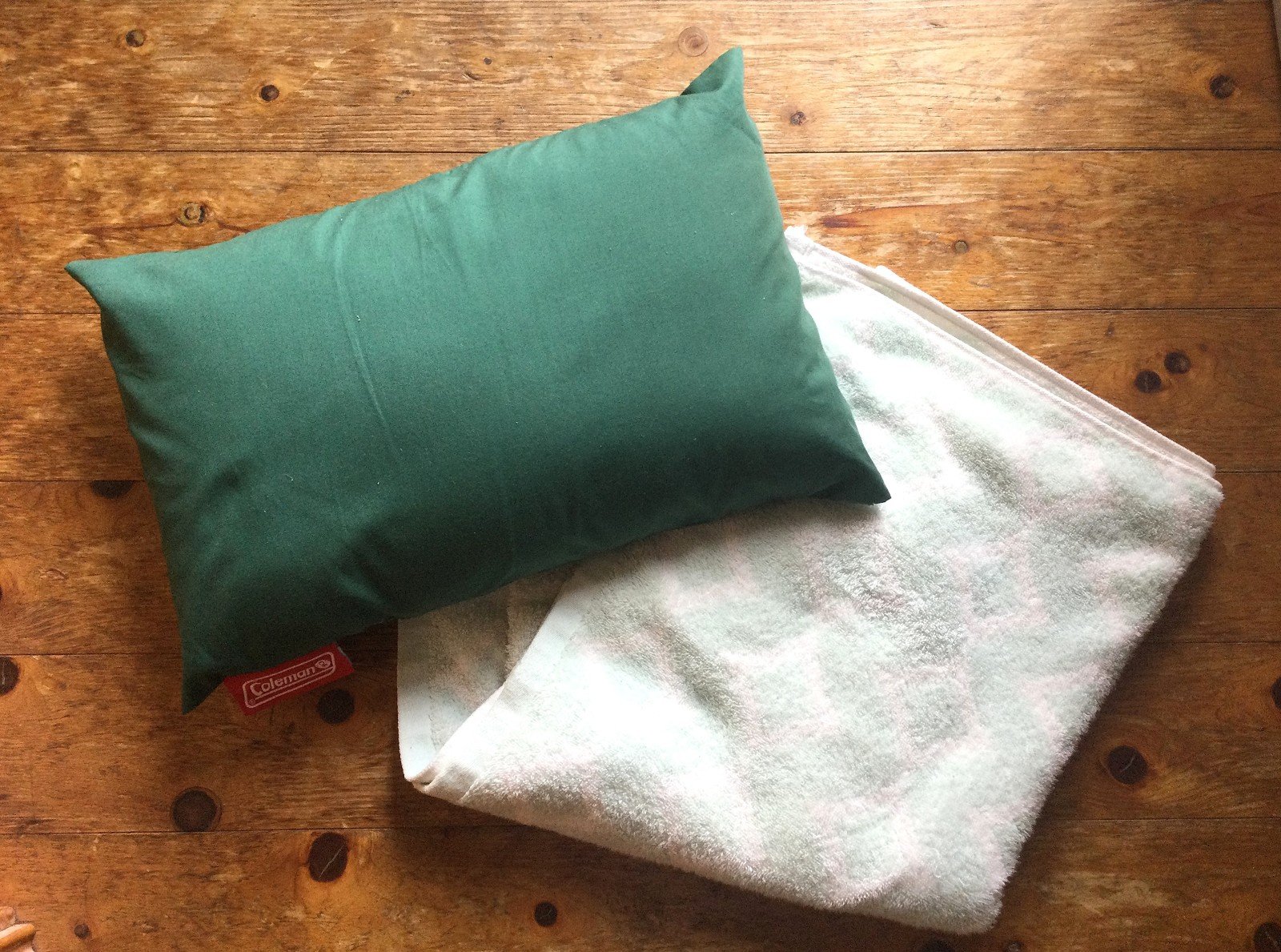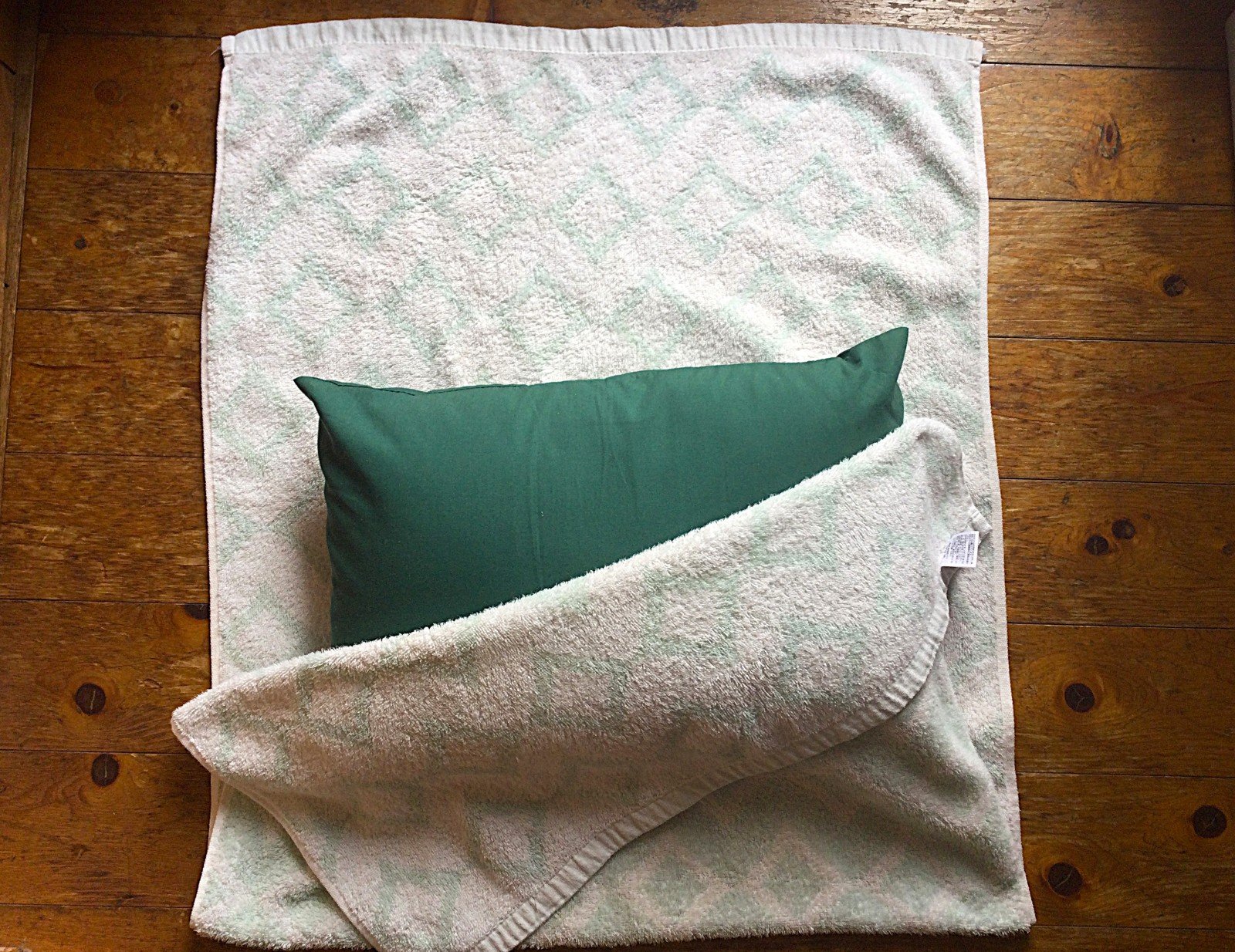 使わなくなったバスタオルは、枕に巻きつけるだけで枕カバーとして活用できます。