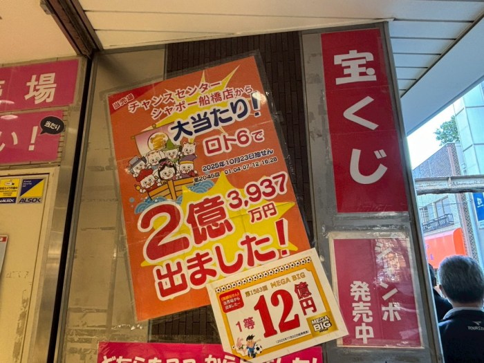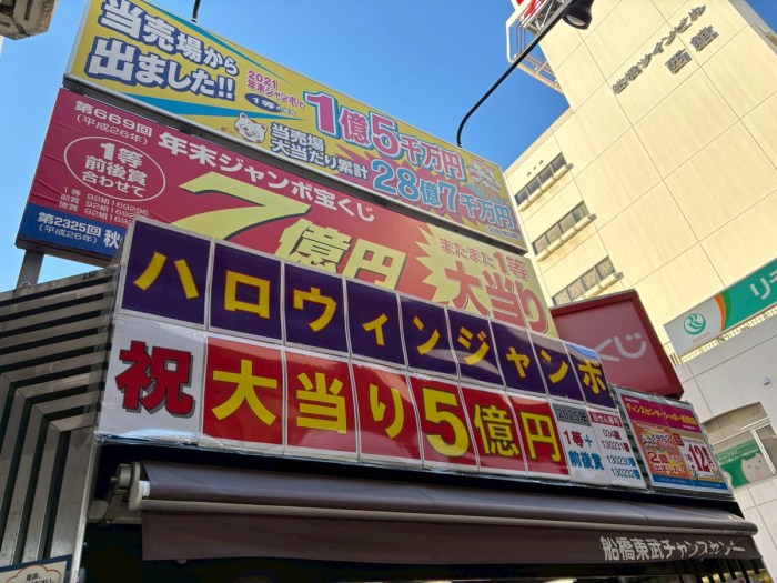 どちらも売り場面積が大きいわけではなく、高額当選がたまに出る程度。そのため、「船橋に幸運の風が吹いている」と話題になっているのだ。