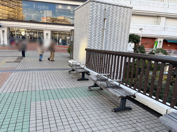 どこでスクラッチを削ろうかと、しばらく歩くと、ちょうどいいベンチを発見。