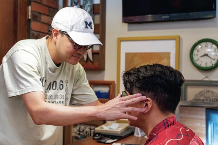 メガネやサングラスは、ファッションの前に道具であるため、繊細なフィッティングを施した方が本来の機能性を引き出すことができる。中島さんは、神奈川で唯一のメガネ工場を持ち、自身のブランドであるグルーヴァーのディレクターもしているため、アイウエアに関しての造詣が深く、多くの経験を持ったプロフェッショナル。