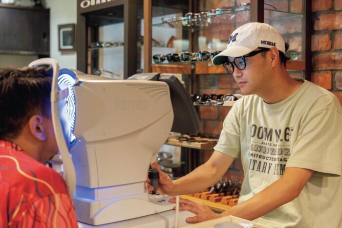 眼鏡医療機器メーカーであるNIDEK社の測定機器を導入している。通常のメガネ店には導入されていない代物で、最新鋭の波面計測装置などを使うことで、角膜のコンディションなどを細かい測定することができるのだ。中島さんのモノ作りやショップは、旧き良き時代の世界観を体現しているが、測定においては最新鋭が最良だと考えており、常に最新機器に入れ替えているというから驚きである。