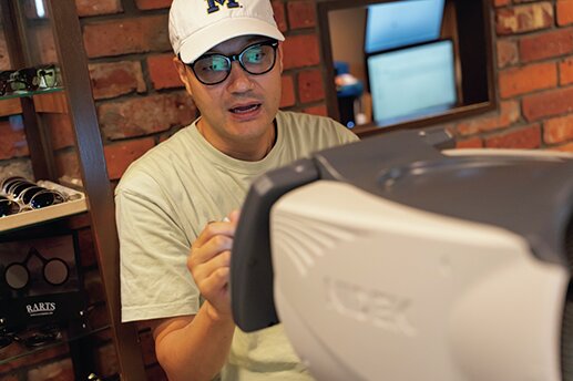 「従来の測定方法では眼に映る見え方だけを調べますが、このドイツ式両眼視測定では脳がどれだけ強く見ているかを測定するんです。人間は両眼の位置の違いによって、上下前後の立体感を生み出しているのですが、その位置が乱視や視力の低下などでズレてしまうため、それをレンズで改善しようというアプローチです。だから視力の数値だけに囚われず、眼本来の機能をレンズで補正していきます。