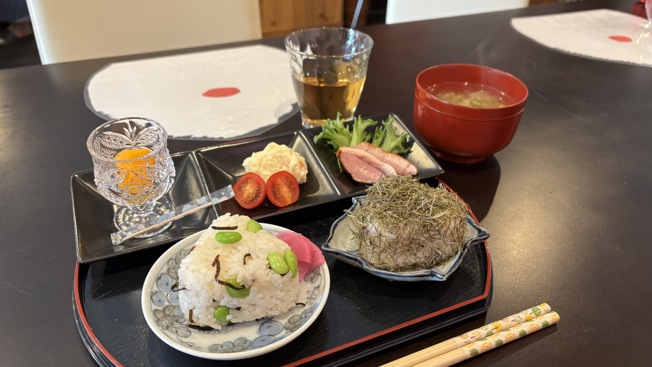 おにぎりは5つの味から2種類を選ぶことができ、テイクアウトもOK。2つで300円とお手頃価格で手作りおにぎりを食べられるので、近くのホテルに泊まった人や出勤途中の人からも人気なんだとか。