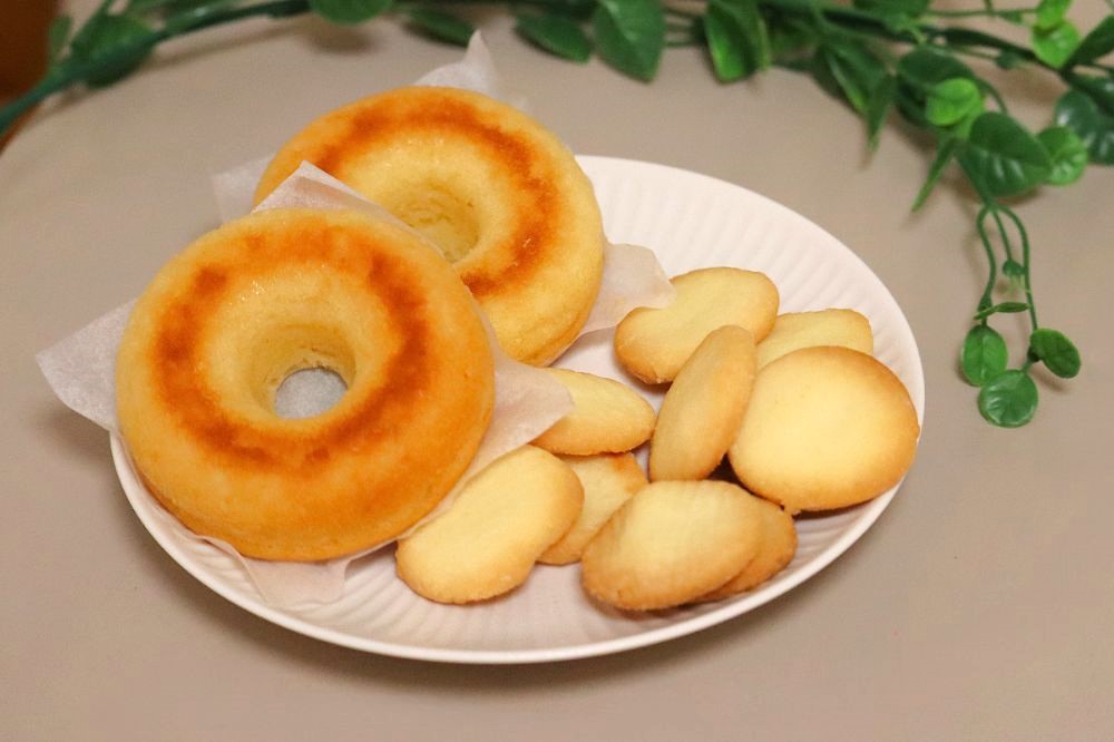 「揚げない焼きドーナツ」(1個100円)は、軽やかでヘルシー。ほんのり甘く、小腹満たしやおみやげにちょうどいい一品です。