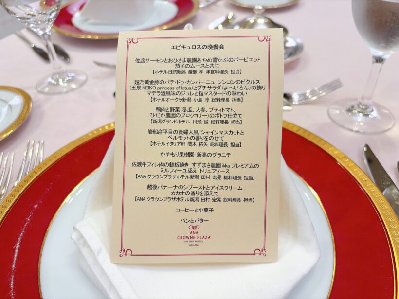 新潟市中央区のANAクラウンプラザホテル新潟で10月3日、「エピキュロスの晩餐会」の試食会が開かれた。