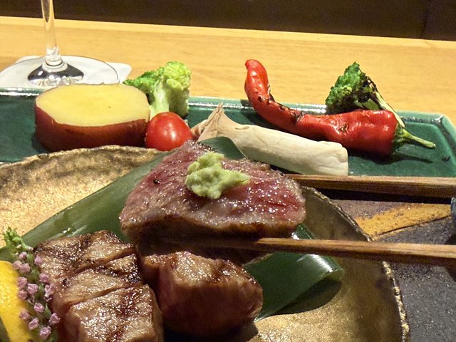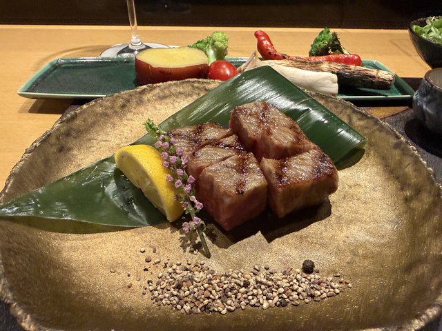 いわゆる鉄板ステーキではなく、炭火でじっくりと焼き上げるスタイルで、前菜からデザートまで丁寧につながるコースが楽しめます。シェフはフレンチ出身で、名店「はふう」の料理長を務めた経歴の持ち主です。