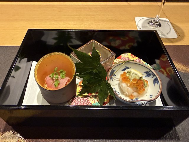 最初に供されるのは、お重に入った趣向を凝らした前菜。