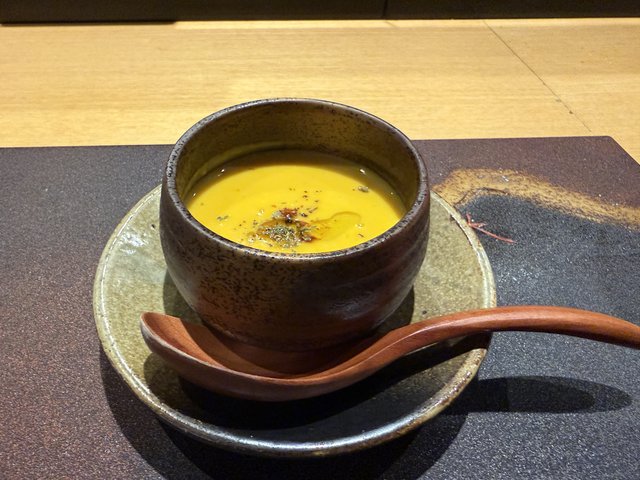 この日はかぼちゃスープで、かぼちゃの甘みがまろやかに広がります。