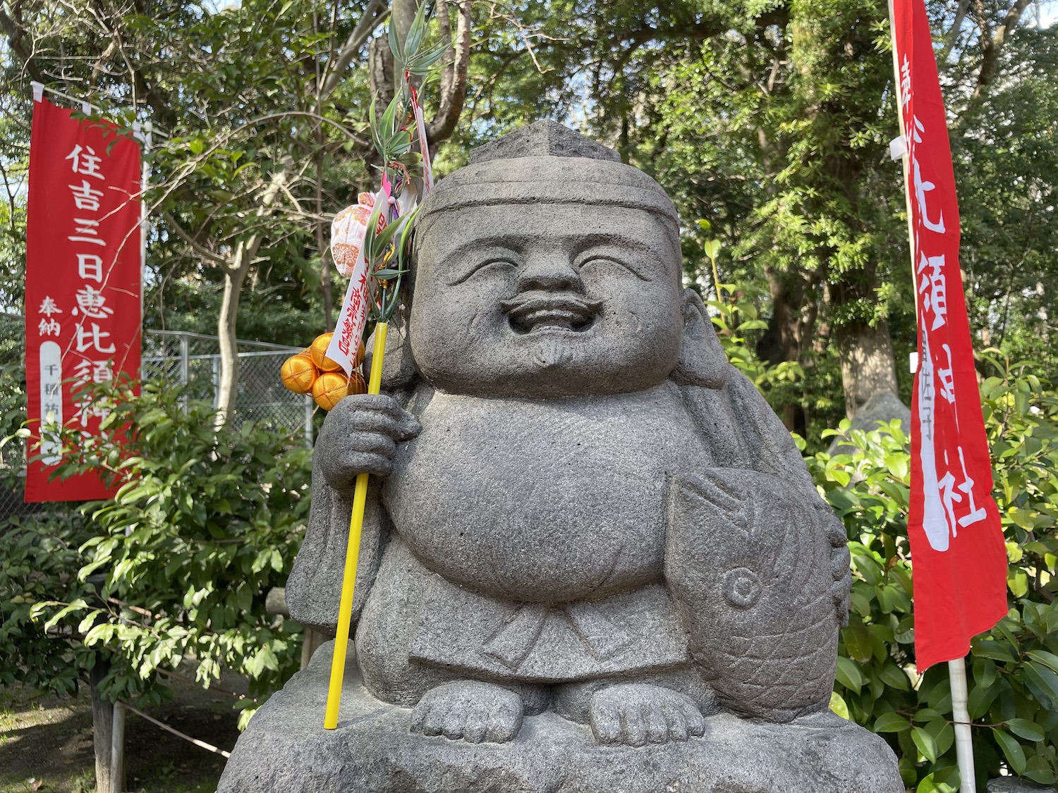 釣竿と鯛を抱えた姿が、イメージとして浮かびやすいですね。大漁祈願から派生して、五穀豊穣や商売繁盛の御利益もあるとされています。