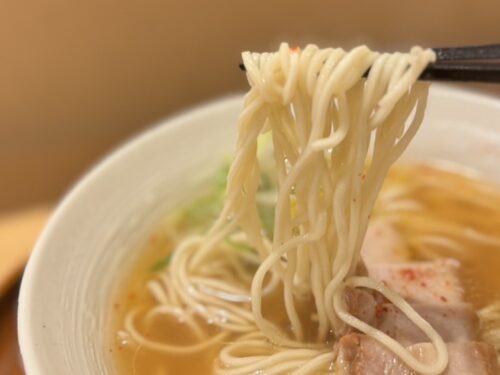 先程は極細麺でしたが、こちらは中細麺。より食べ応えがあるし、小麦感が増します。それにしても、二品食べて思った事は、二軒のラーメン屋さんをはしごしたような気持ちになるという事。 「てしお」では、メニューによって全然違ったラーメン体験が出来るんです。