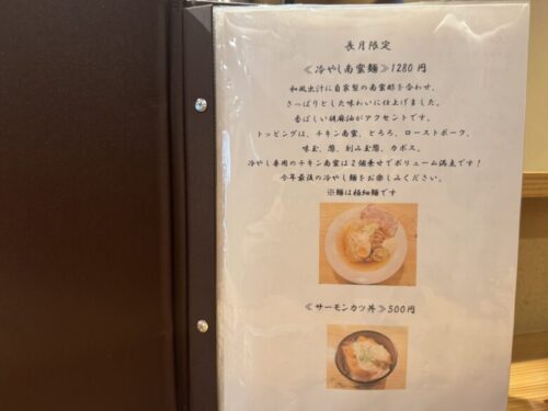 どどんとメニューを紹介していきます。冷やし南蛮麺とサーモンカツ丼が長月(9月の意)限定。