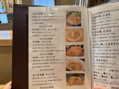 こちらは「柚子塩ラーメン」900円。選べる麺は中細麺にしました。