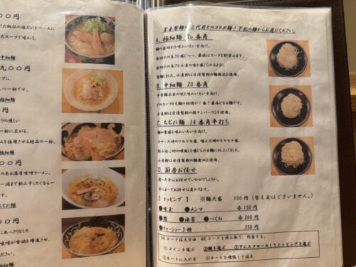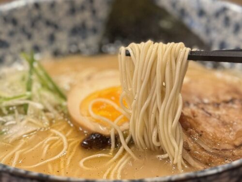 麺はこちらの「魚介系豚麺」におススメの極細麺にしました。固めの極細麺に魚介の風味がしっかりと絡みつき、鼻からふわりと香りが入ってきます。