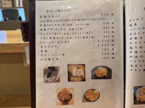 こちらがセットとご飯メニューとなっております。 オーダーは、お席にありますQRコードをスマートフォンで読み取ってからの仕様になっております。