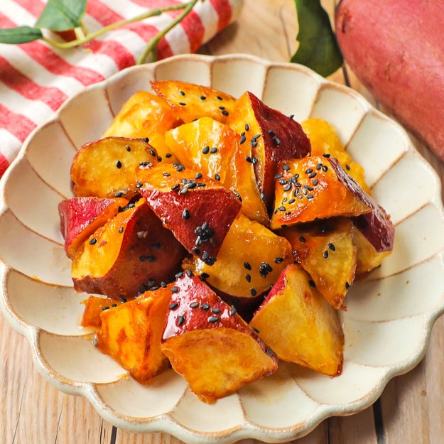 これ、めちゃくちゃ簡単なのにほんとおいしい!さつまいもをこんがり焼いて、はちみつとバターをじゅわ〜っと絡めるだけでコクうまになる「はちみつバター大学芋」のレシピをご紹介します。