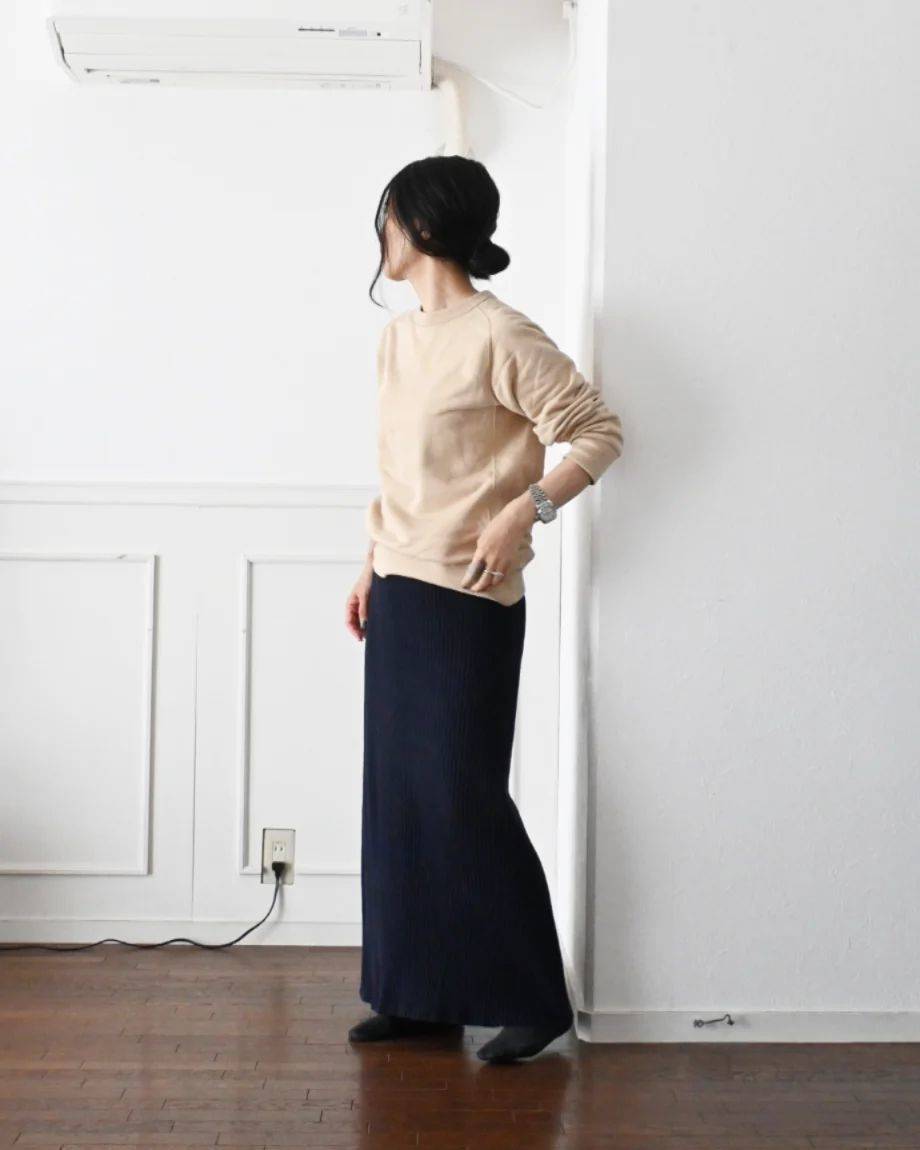 【11月編】周りと差がつくスウェットコーデ①ベージュスウェット×黒スカート