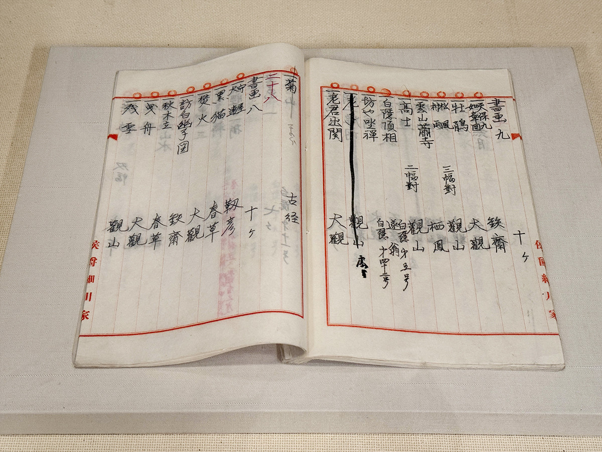 戦局の悪化に伴い、護立は所蔵品を熊本へ疎開させました。移管品目録には春草《黒き猫》をはじめ、多くの近代日本画が記されています。