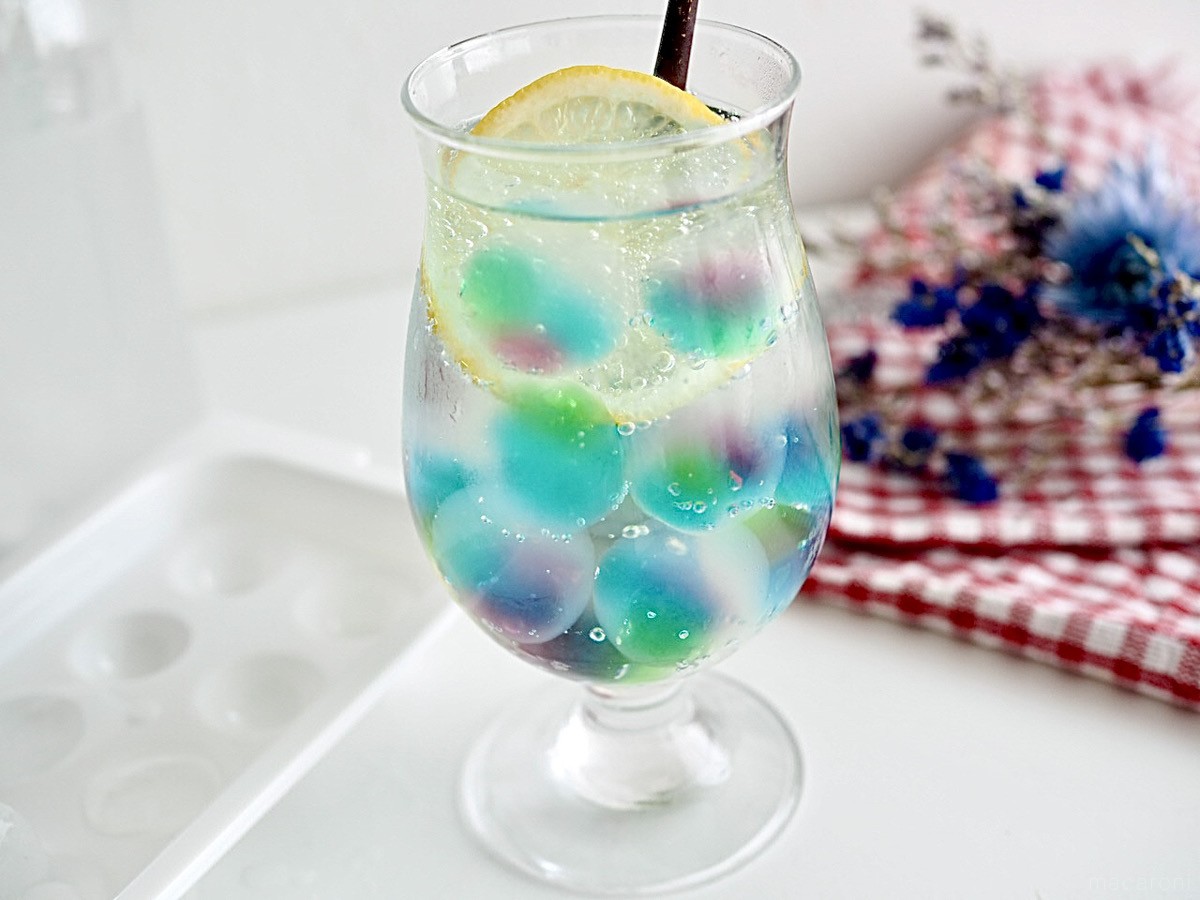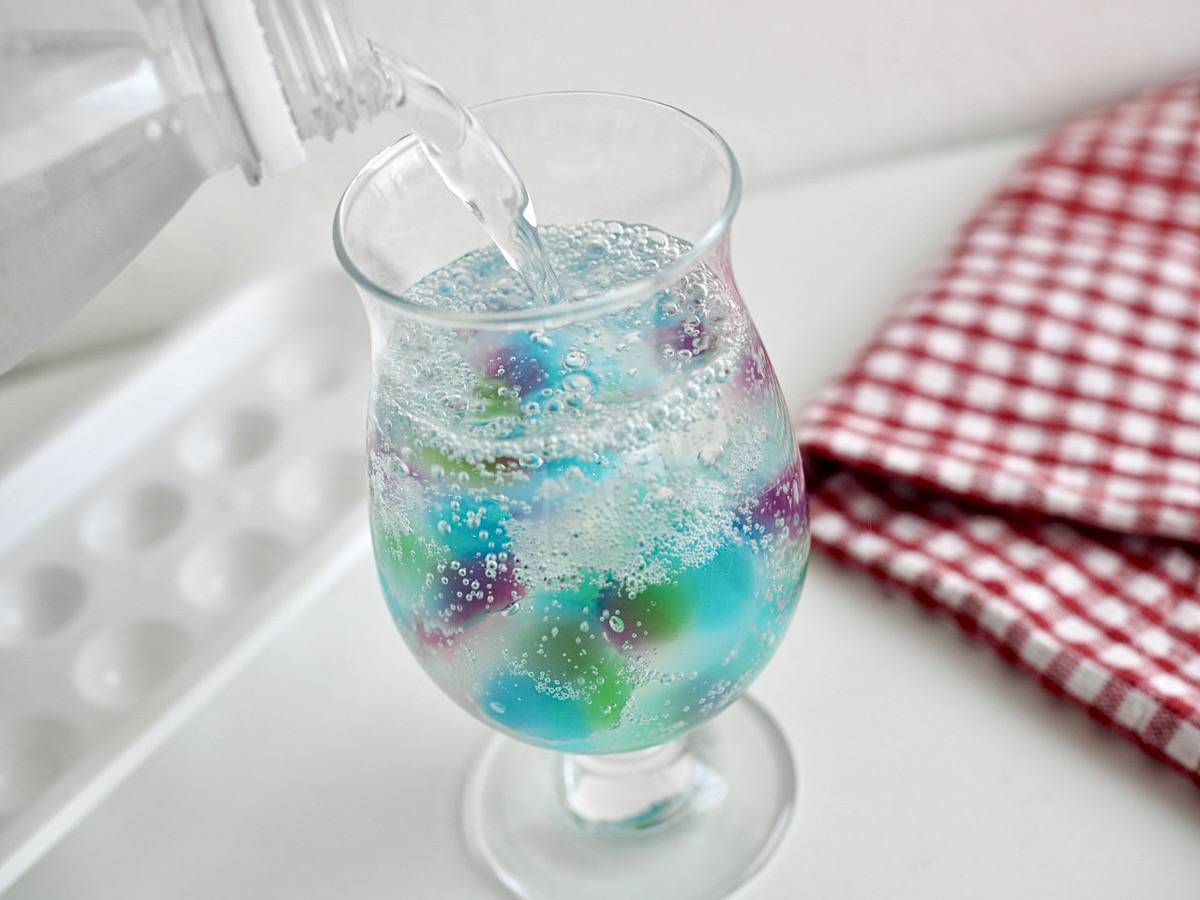 材料は100均でそろう「喫茶店風ゼリーポンチ」レシピ。食紅いらず、製氷皿で簡単!