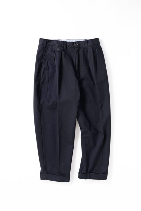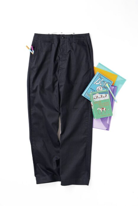 高密度に織り上げたチノに天然樹脂加工を施し程よいハリをプラス。ベースはUSアーミーの「45カーキ」。深めの股上、太さもオリジナルに近いワイドシルエット。2万4200円(ブリックレイヤーTEL03-5734-1098)