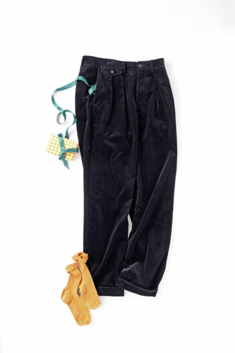 2プリーツのインタックにコインポケットを備えたクラシックなスタイル。太めのリラックスシルエットと、やわらかなコーデュロイが上質な履き心地を生む。3万5200円(ラルフ ローレンTEL0120-3274-20)
