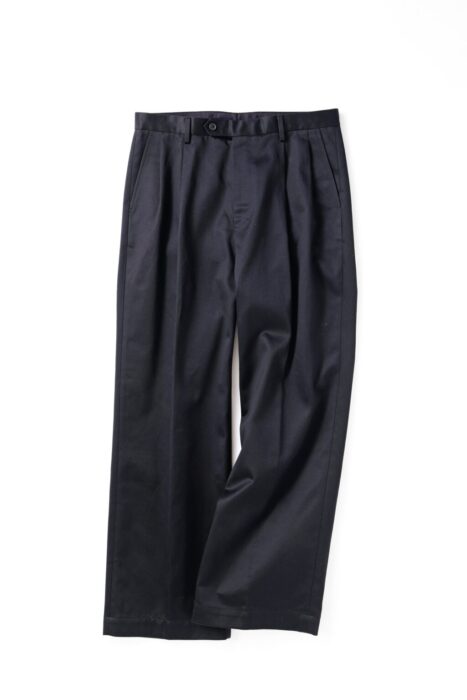 定番のワイドチノをインからアウトタックに。よりすっきりとした印象に仕上げ、光沢のある生地が上品さを演出。ジャケットとも好相性。3万1900円(ユナイテッドアローズ有楽町店 TEL050-8892-0763)