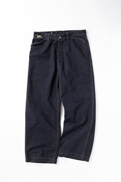 歴史的な隠れ名作「フリスコジーンズ」をモチーフに、さらにワイドシルエットで再構築。オーガニックコットンの硫化染めダック生地を使用している。4万6200円(フィル ザ ビル マーカンタイルTEL03-6450-3331)