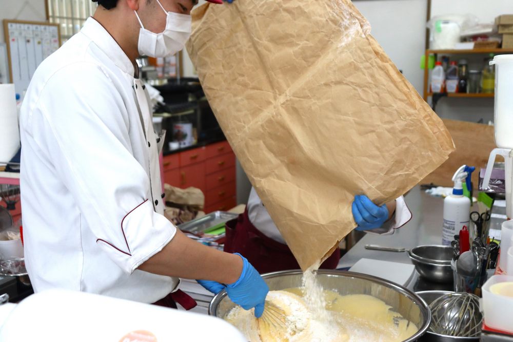 こだわりの小麦粉を入れて混ぜていきます。