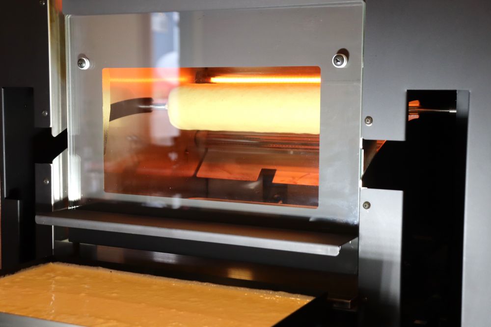 生地の焼き具合を見ながら自動で焼いてくれるなんて、賢すぎる。ふわーんとバターの良い香りが店内に漂います。
