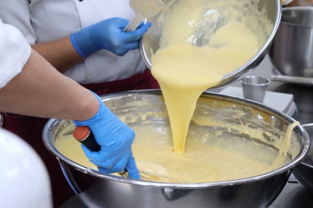 特別に生地を作るところから見学させていただきました。生地はお店のオリジナルの配合で作っているということで、機械を導入しているお店でも、全く同じバウムクーヘンが食べられるというわけではないそうです。