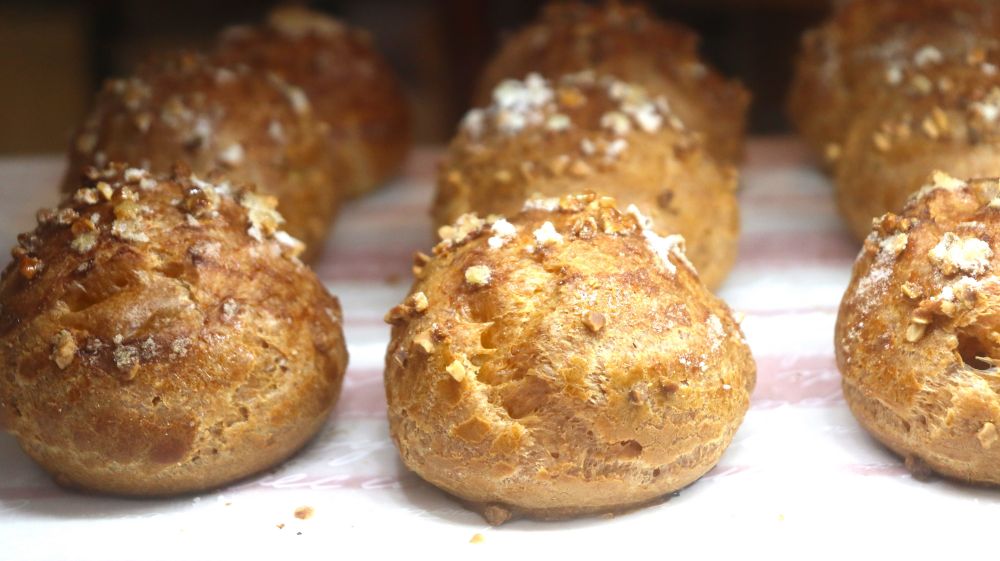 一度見たら忘れられない、かわいい丸い形のシュークリーム。地元の卵・小麦粉など、素材ひとつひとつにこだわり、アーモンドと砂糖でカリッと仕上げた人気商品です。大きすぎないサイズ感も嬉しく、「子どものおやつに…」「自分へのちょいご褒美に」と人気の商品です!