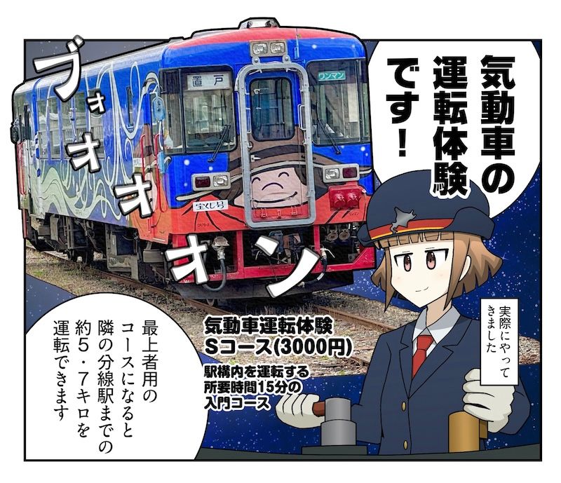 一番の目玉と言える運転体験には初級から上級までの様々なコースがあって、一番長いコースだと陸別駅から北見方面へ5.7km離れた分線駅までの区間を運転することができます。今回の取材では、一番初級のSコース(3,000円)を体験してきました。