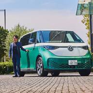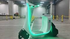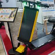 右ハンドルのレバーがアクセルで、押せばグィーンと進んでいく。なお、出だしは足で地面を蹴って助走つける感じで滑り出し、あとは電動でグィーンと走る……ってな具合。