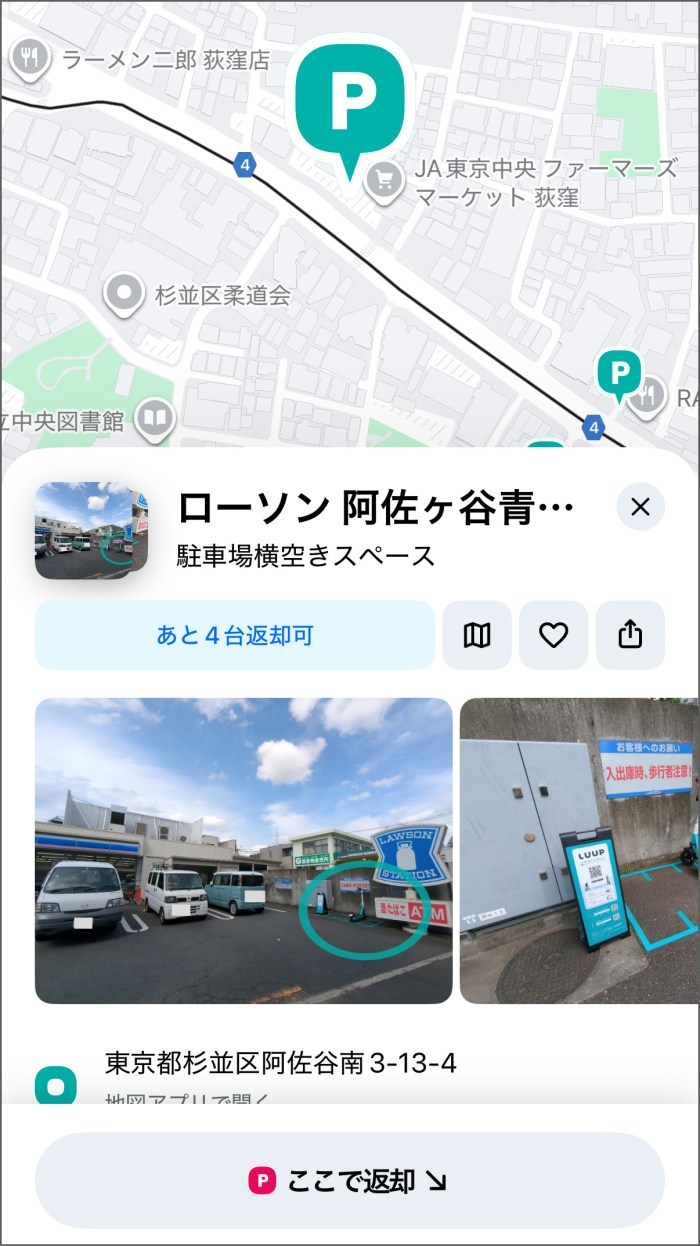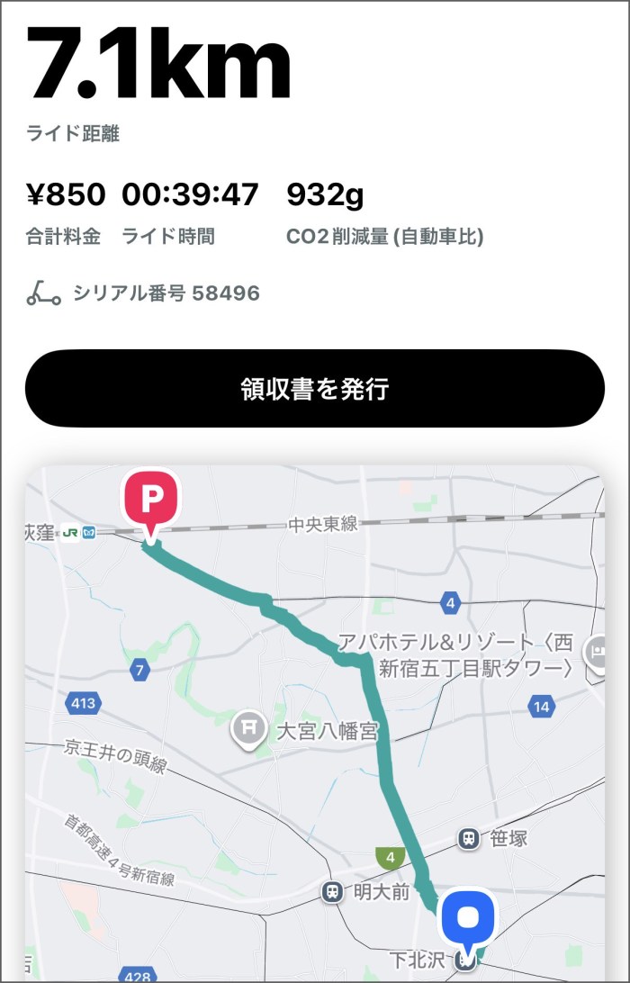 なお、LUUPのスマホアプリは、目的地(返却ポート)までの地図がアプリに表示されるので、道に迷うことはない。これはありがたい。