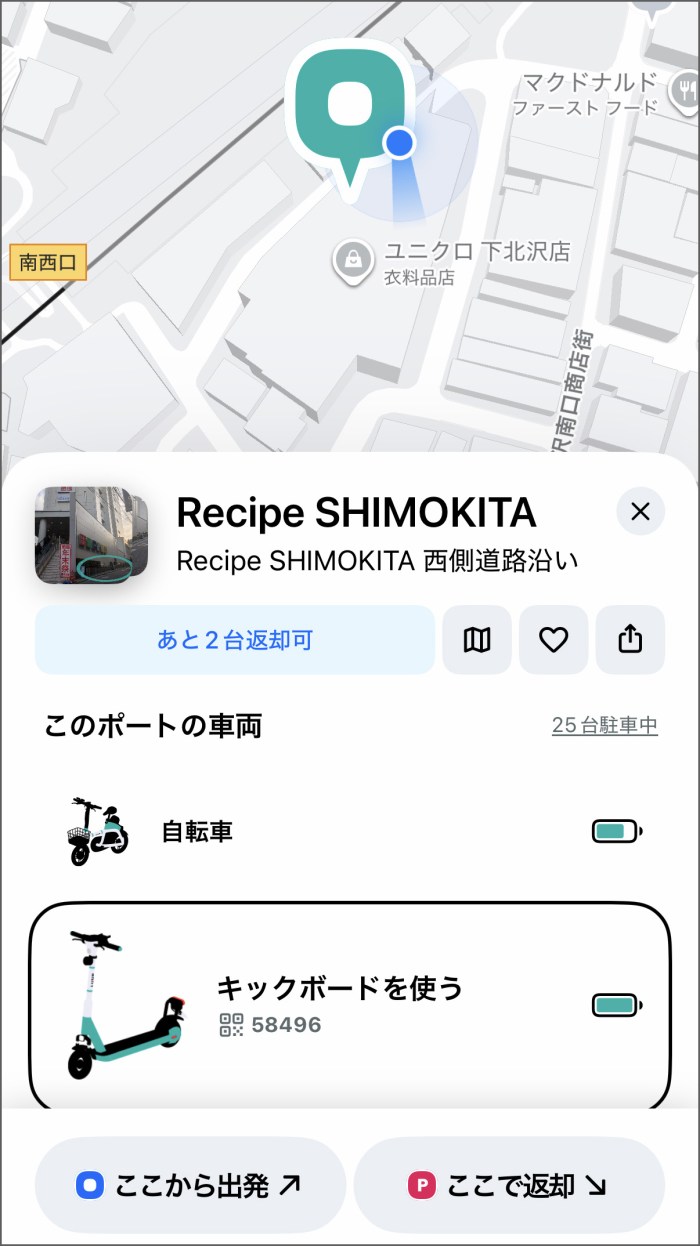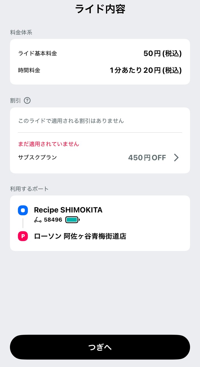 返却場所も最初に選択。これで「勝手な場所への乗り捨て」ができないようになるわけだな。考えられているなぁ……。
