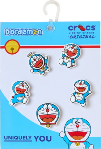 また、同時発売される「ドラえもんファイブパック ジビッツ™ チャーム」は、ドラえもんの世界観を詰め込んだ5種類のチャームセットです。お気に入りのクロックスのシューズやアクセサリーを、さらに自由にデコレーションできます。
