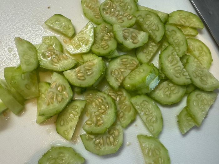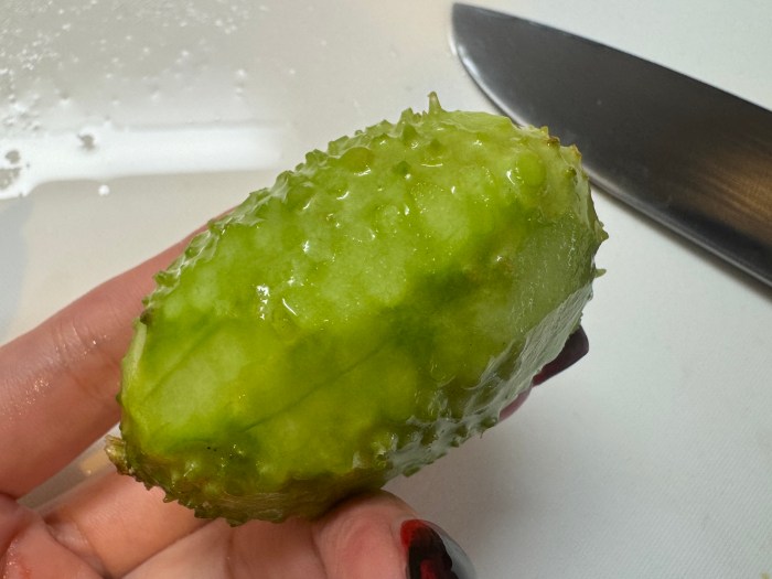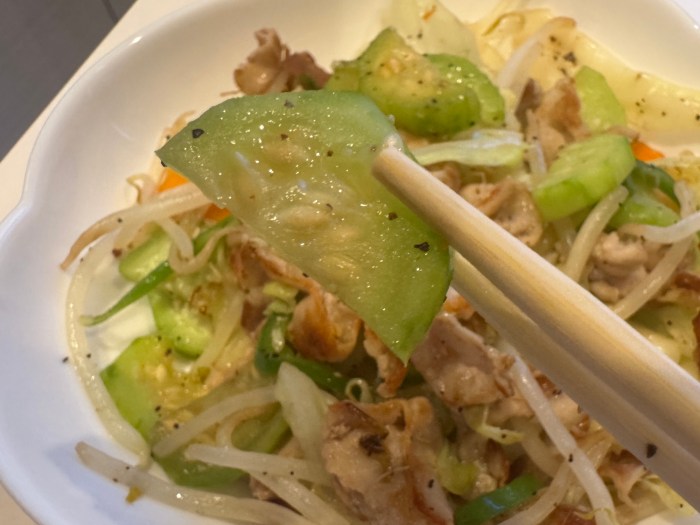 見た目と香りとみずみずしさはキュウリのソレなのだが、食感が明らかに異なる。ちょっと例えが難しいけど、私の知る限りでは “軽〜く焼いたナス” が一番近いかもしれない。またズッキーニやメロンといった、キュウリ以外の瓜の要素も混ざっている。