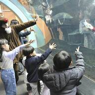 時間は約15分間で、平日は正午から、土日曜と24、25日は正午からと午後2時からの2回制。期間中の平日午後2時からは、2階うみがたりチューブで、サンタ姿の飼育員が好きな生き物について紹介する「いち推し生きものトーク」も行う。