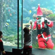 サンタダイバーが餌のプレゼント うみがたりでクリスマスイベント
