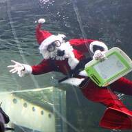 《画像:大水槽に登場したサンタダイバー》
