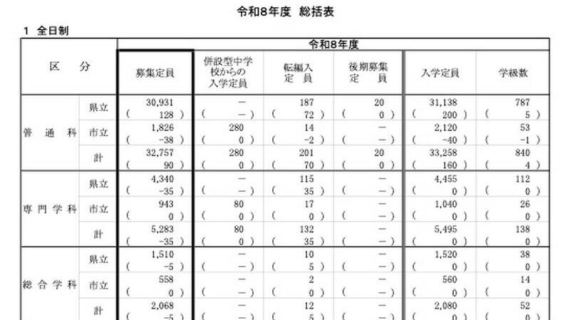 県教育委員会では、少子化を理由に16(平成28)年度から県立高校を削減する計画を進めている。市内ではこれまで20(令和2)年度に弥栄、相模原青陵が「相模原弥栄」に、23(令和5)年度に城山、相模原総合が「相模原城山」に再編・統合されてきた。県内の公立中学校の卒業者は1988(昭和63)年の12万人強をピークに現在は6万人強程度まで減少している。