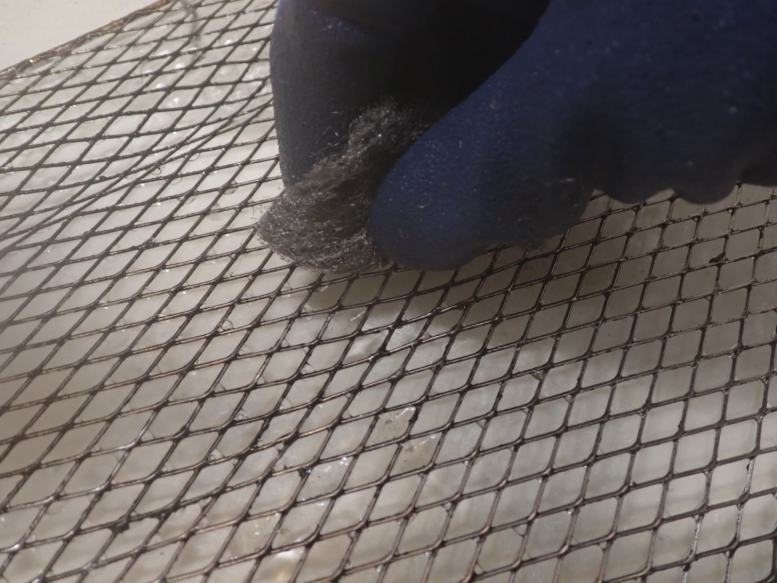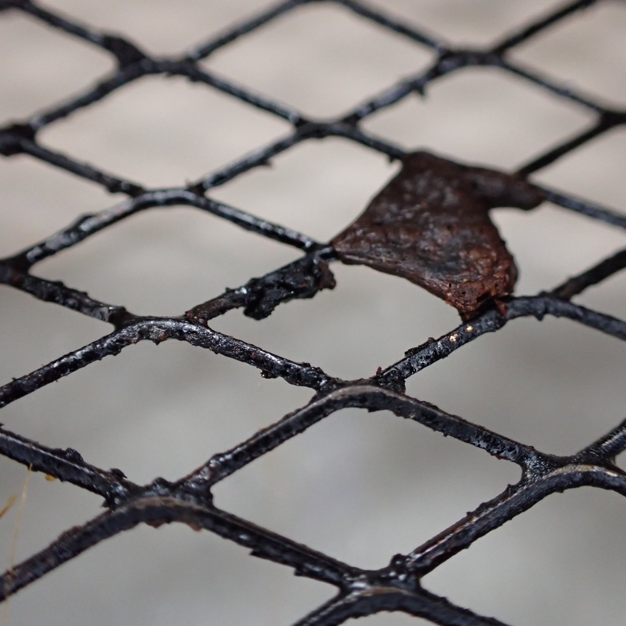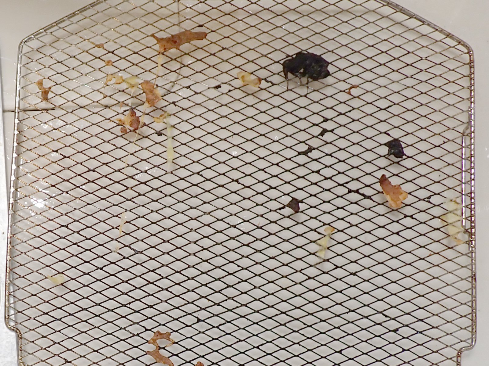 今回のターゲットは、購入してから掃除をした覚えがない残念なトースターの網です。パンくずやチーズの残骸、もはや何のコゲだかわからないものまでビッシリ。そして全体的に焦げて黒く変色しています。