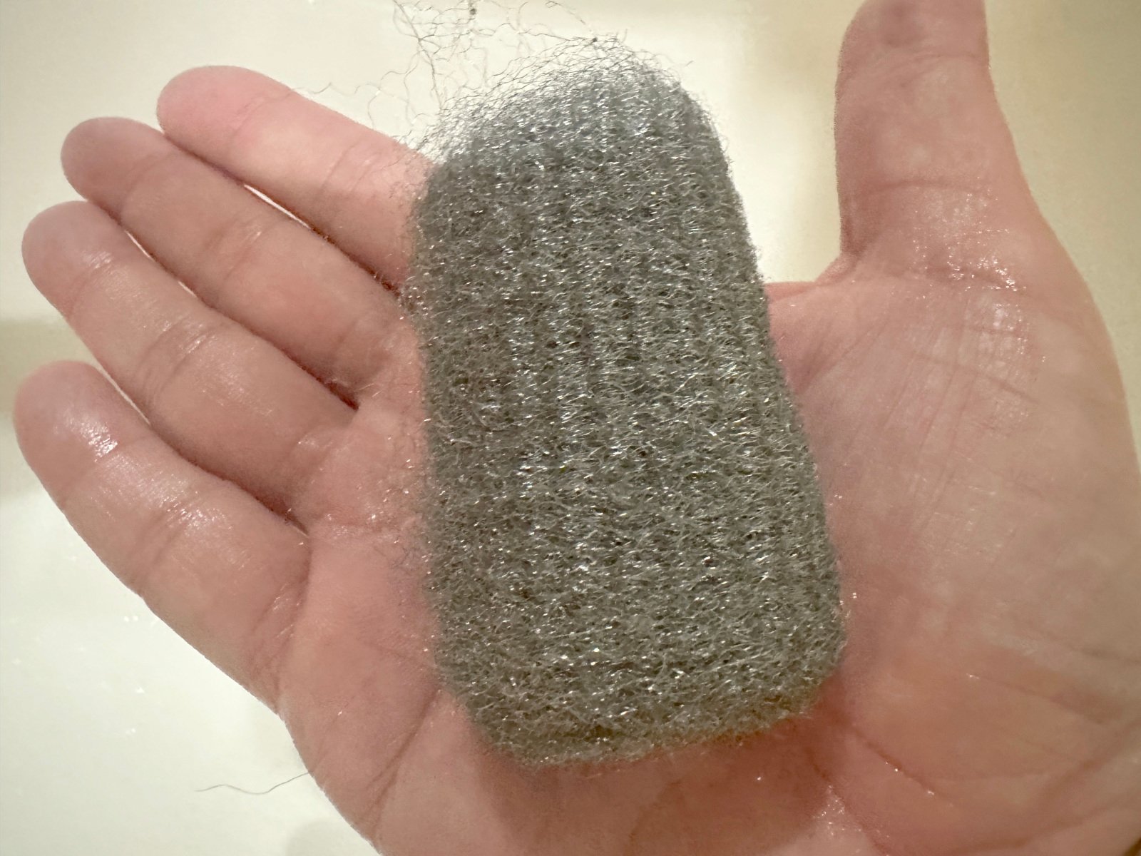 この道具は、こびりついたコゲなどの汚れを落としたり、金属を磨いたりするのに重宝します。