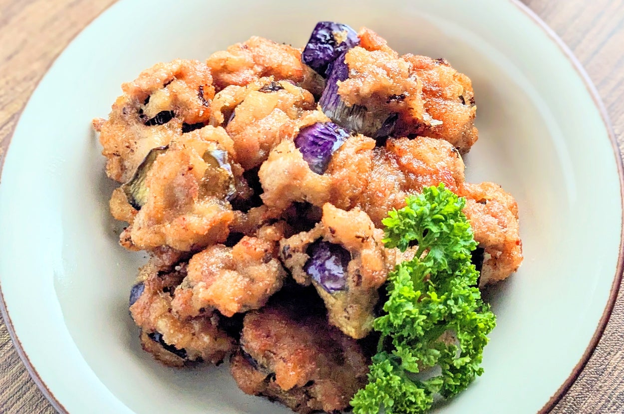 「なすと豚バラの唐揚げ」は、衣の中に閉じ込めたうまみが口いっぱいに広がる一皿。下味にしょうがとにんにくをしっかりきかせているので、かむたびに食欲をそそる香りが立ちます。ぜひ、作ってみてくださいね♪
