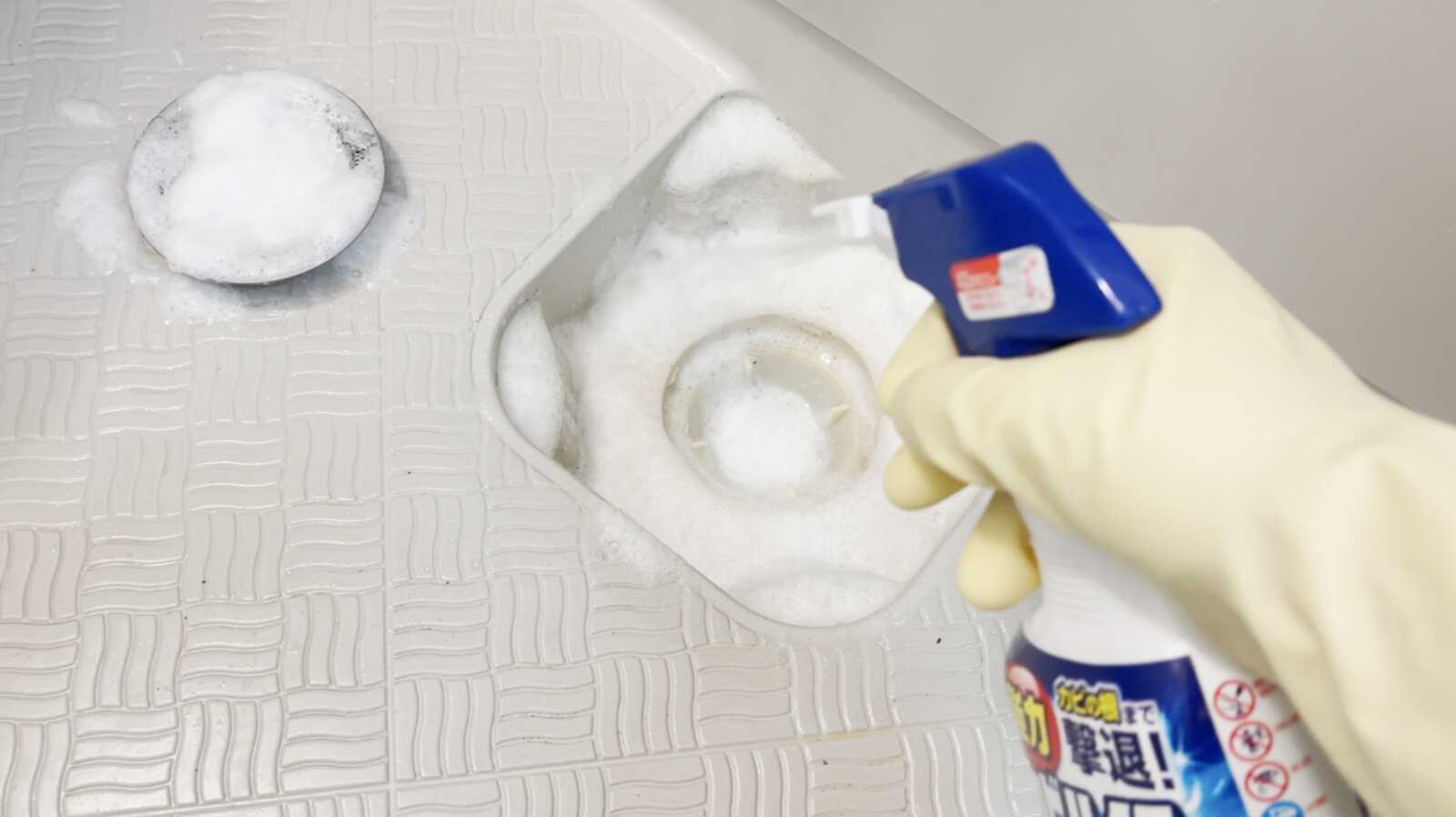排水口のフタを外し、髪の毛や汚れをあらかじめ取り除きます。