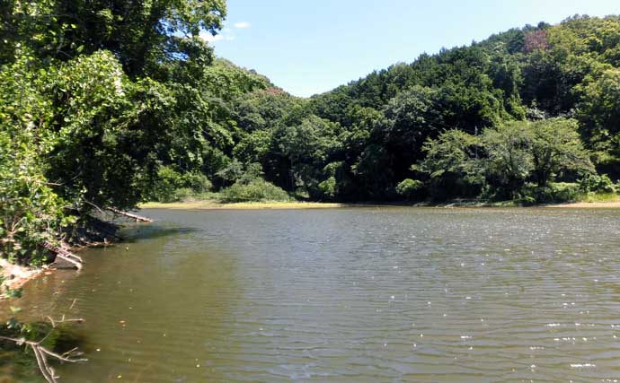 また上流部のいいところは山を背にするため、昼近くまで日陰で釣りができることだろう。夏の暑い時期にはかなり大きなメリットだと思う。また以前はワカサギシーズン中の陸釣りは禁止だったが、現在は一年を通して釣りができるようになった。